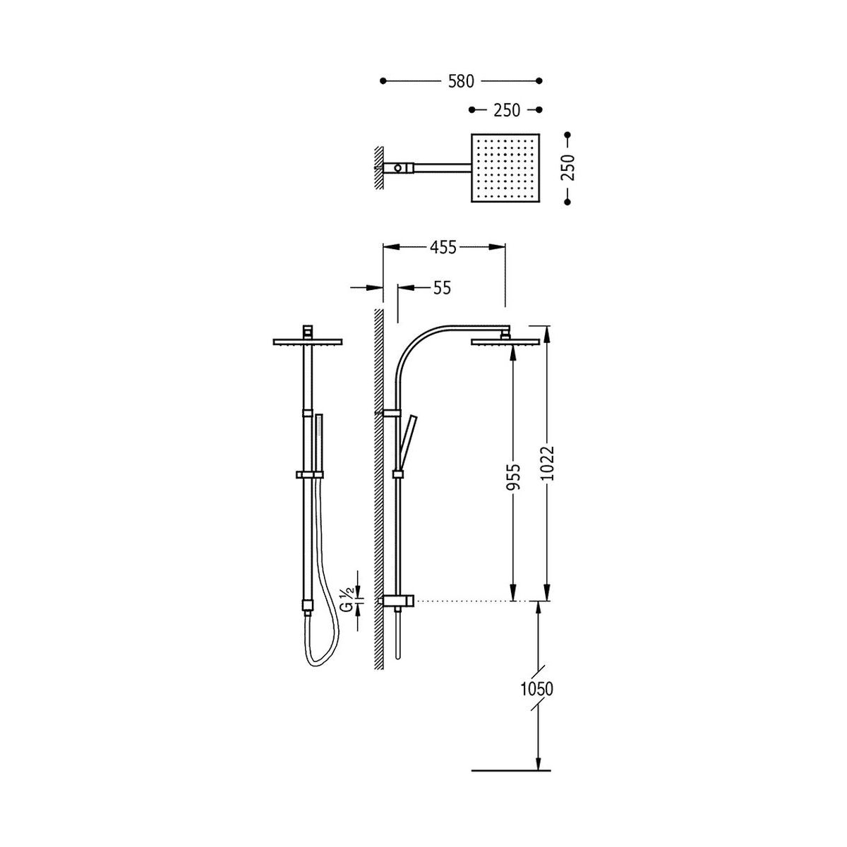 Tres Cuadro-Tres sprchová sada na stěnu chrom 1.07.131