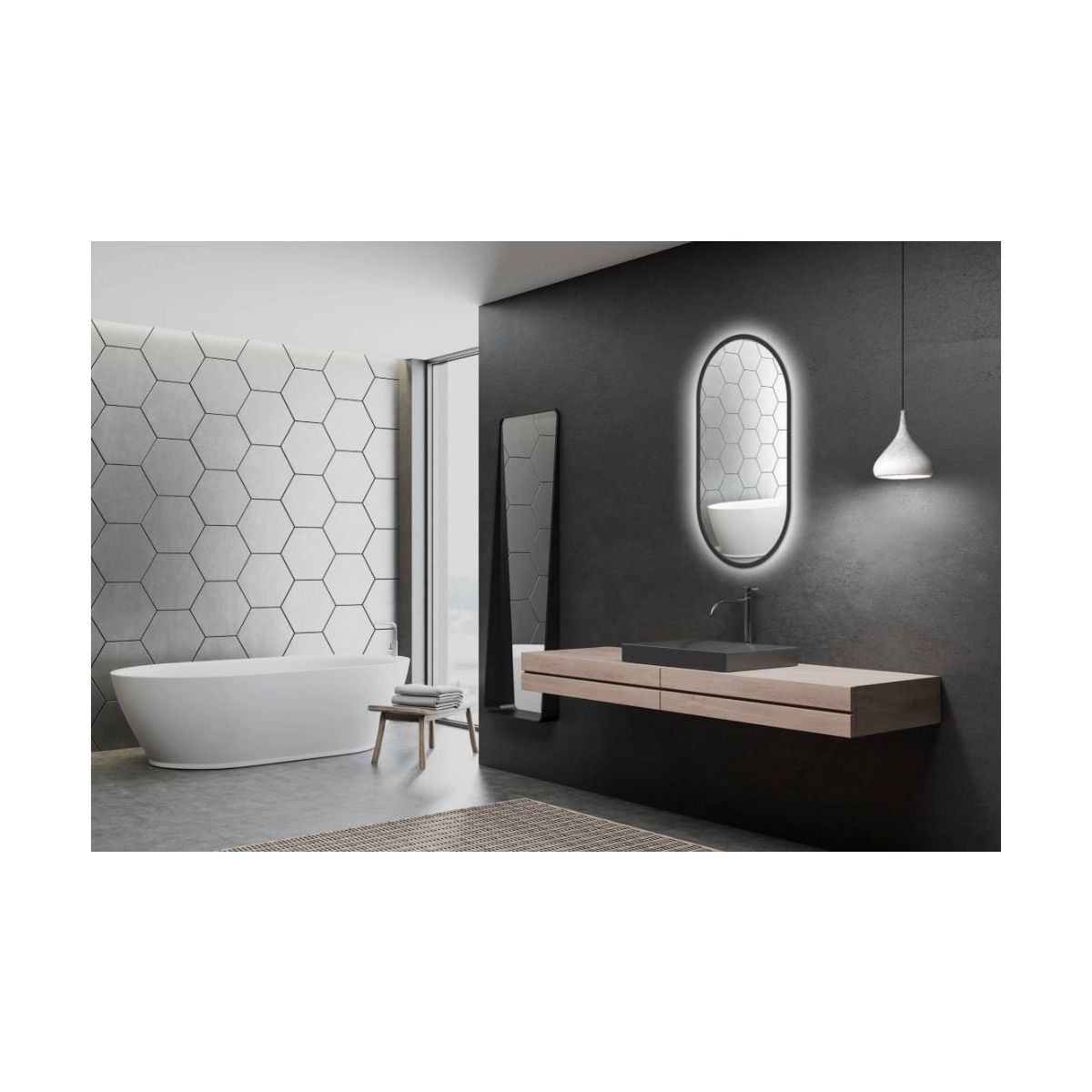 Venti Oslo zrcadlo 50x90 cm oválný s osvětlením černá 5907722357519