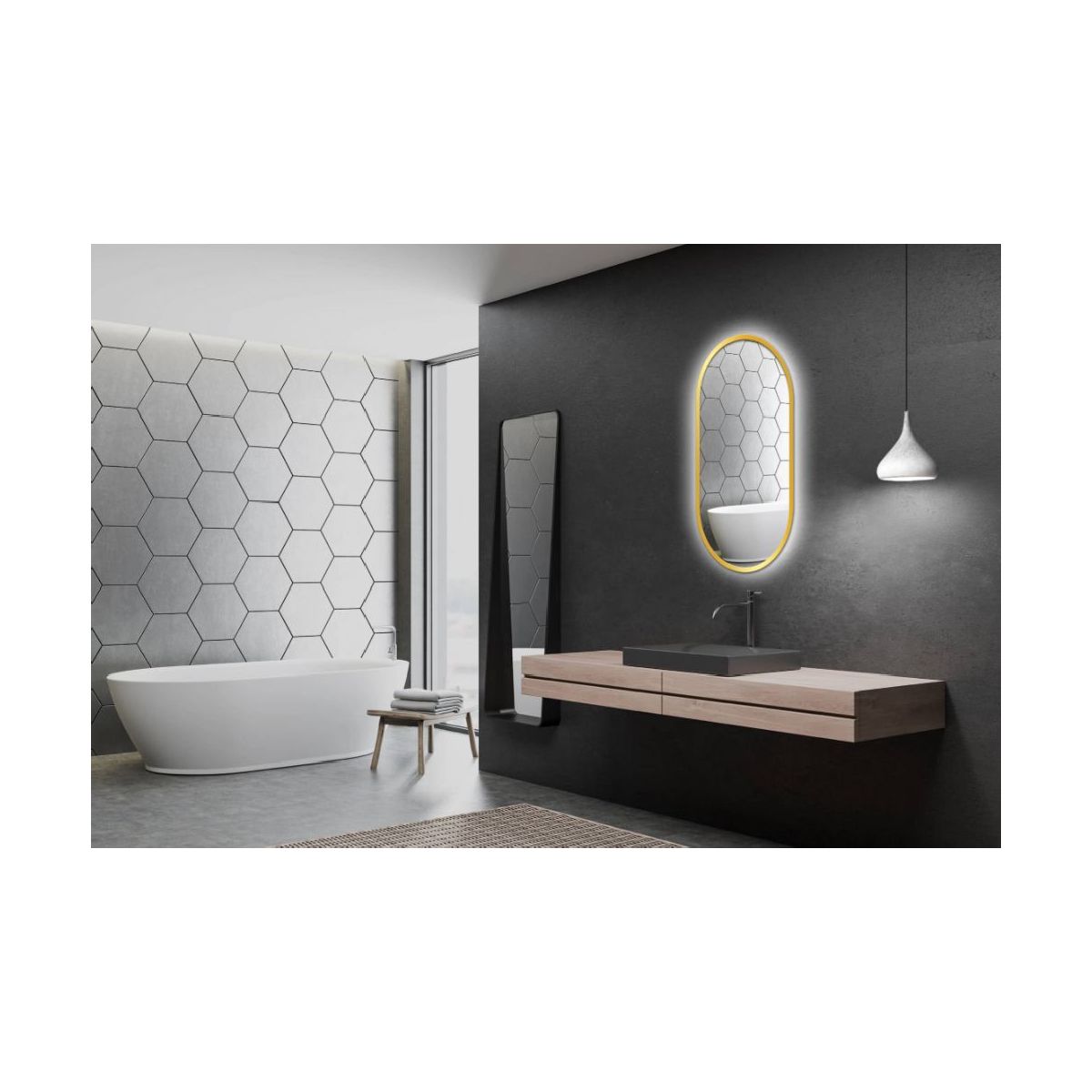 Venti Oslo zrcadlo 50x90 cm oválný s osvětlením zlatá 5907722357007