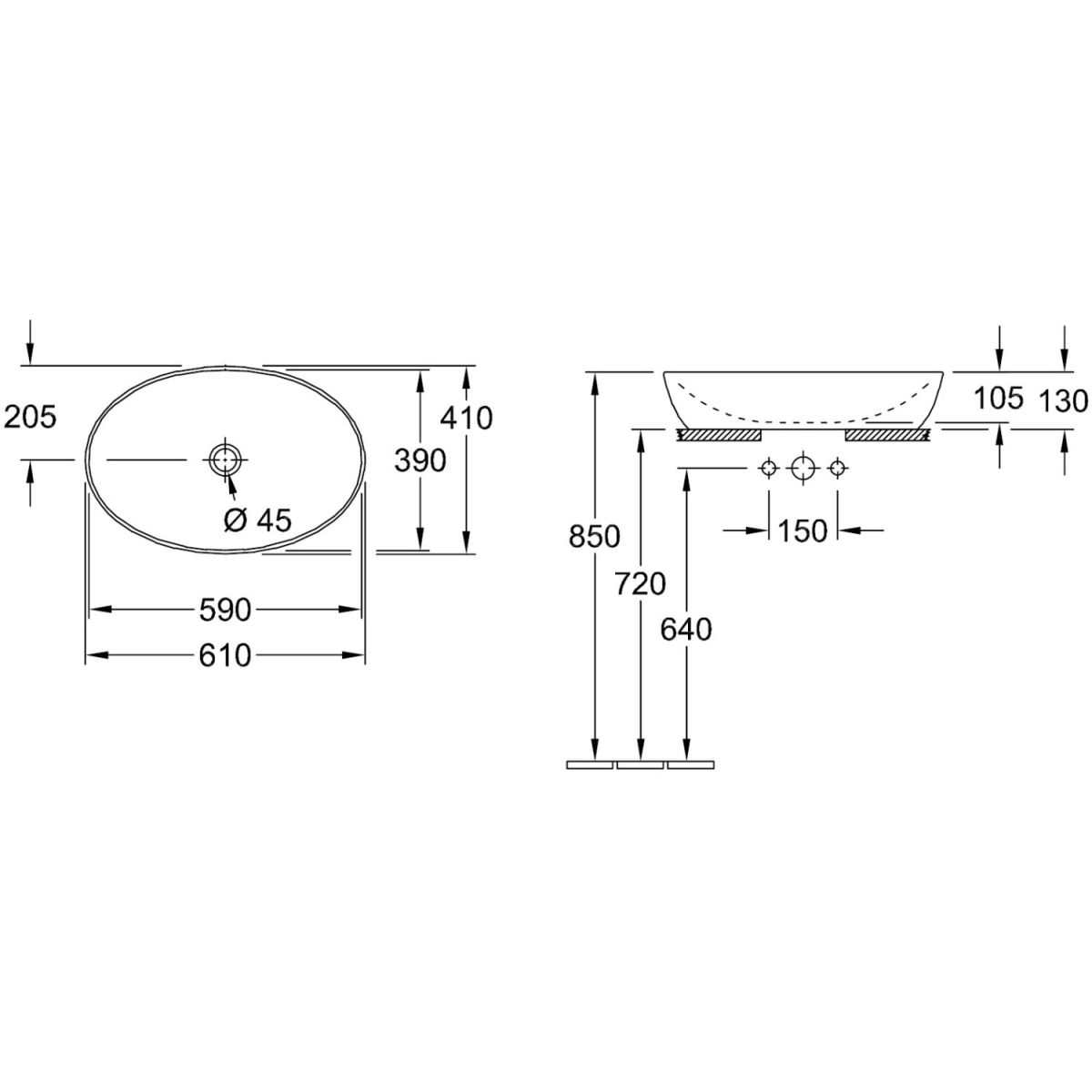 Oválné umyvadlo stojící na desce z kolekce Artis značky Villeroy & Boch zaujme mimořádně tenkými stěnami a jemnými konturami díky inovativnímu materiálu TitanCeram, díky kterému jsou i umyvadla s úzkými okraji mimořádně odolná a trvanlivá. Umyvadlo má také pohodlnou hloubku 10 cm, díky které je mytí rukou velmi pohodlné a chrání prostor kolem umyvadla před postříkáním. Hluboká, elegantní tmavě modrá barva a moderní matný povrch po celé ploše umyvadla se skvěle hodí jako designové akcenty v koupelně.