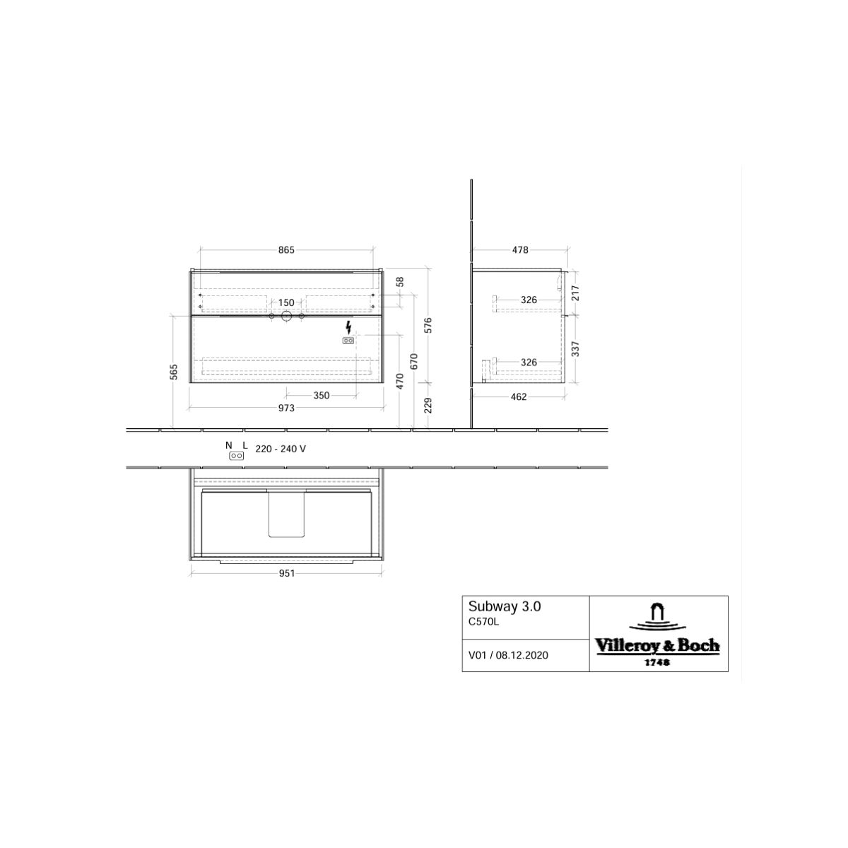 Villeroy & Boch Subway 3.0 skříňka 97.3x47.8x57.6 cm pod umyvadlo závěsná C570L2VN