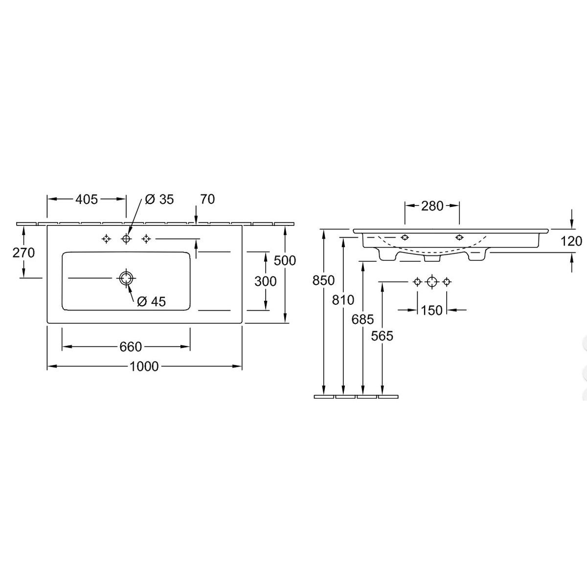 Villeroy & Boch Venticello umyvadlo 100x50 cm obdélníkový klasický-nábytkový-s pultem bílá 134L1R1