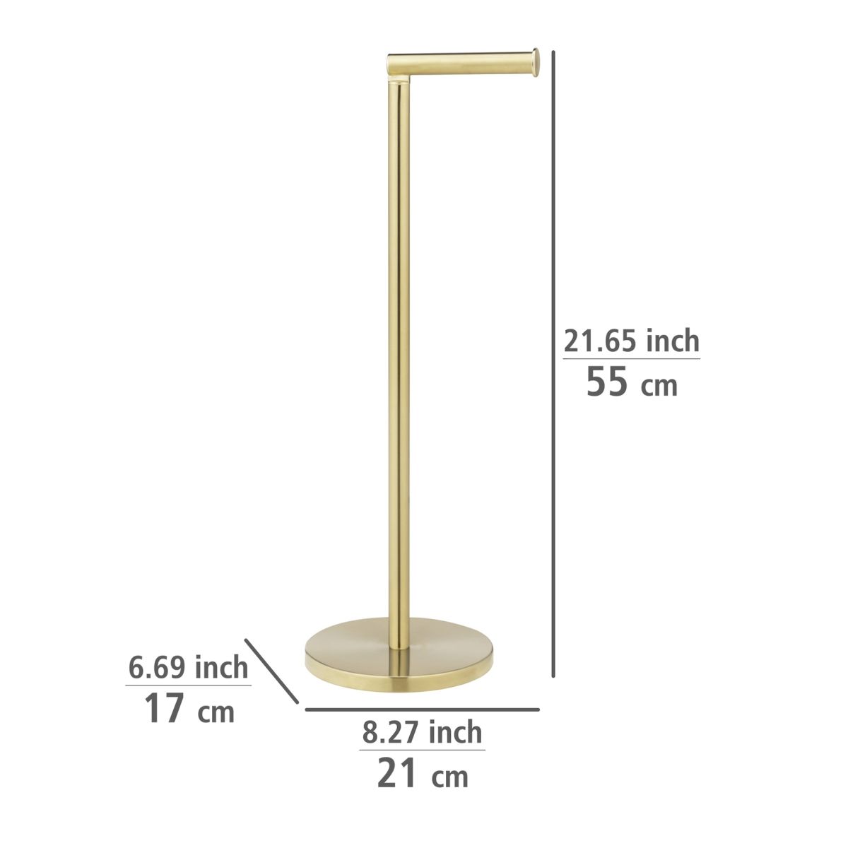 Stojící držák na toaletní papír v elegantní zlaté barvě. Dodá eleganci a šmrnc každému interiéru.